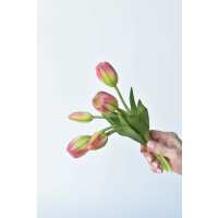 10" Faux Real Touch Pink/Yellow w/Green Stripe Tulip Stem Bundle