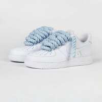 Custom Nike AIR Force 1 Sneaker - Dicke Schnürsenkel/Rope Babyblau 43