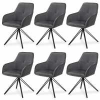 Drehstuhl Clyde mit Armlehne Dunkelgrau / Samt / 6er Set