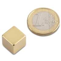 Würfelmagnet 12,0 x 12,0 x 12,0 mm N48 Gold - hält 11 kg