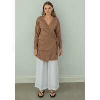Miann & Co Womens - Monroe Knit Wrap Long Sleeve Top - Café Au Lait XL