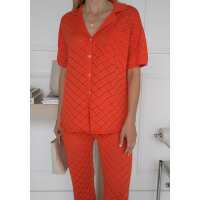 Miann & Co Womens - Rue Knit Pointelle Shirt - Tomato S