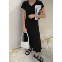 Miann & Co Womens - Lily Short Sleeve V-Neck Ribbed Maxi Dress - Black L