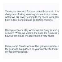 Perfection house/pet sitting