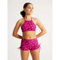 Teen Swimwear Performance Tie Back Crop Top Cheetah Chase Purple Cheetah Chase Purple / Y8-10