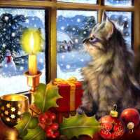 Kitten Bij Raam 40x40cm / Rond