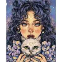Meisje Met Kat Grijs 40x50cm (Meest Gekozen) / Rond