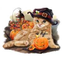 Bruine Kat Halloween 20x25cm / Rond