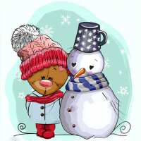 Sneeuwpop & Beertje Muts 50x50cm (Meest Gekozen) / Vierkant