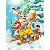 Konijntje Op Slee 25x30cm / Vierkant