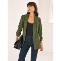 Khaki Green Relaxed Ruched Sleeve Blazer