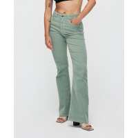 Kuyichi - Lisette Flare Baby Cord - Duurzame Flared Jeans - Pale Groen - Maat 33 / 34 - 98% Biologisch Katoen, 2% Elastaan