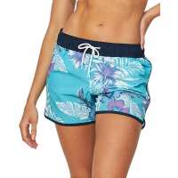 Womens - Swim Short - Boardshort - Tropical Hibiscus Aqua Tropical Hibiscus / Aqua / L