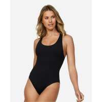 Womens - Swim One Piece - Ribbed Cross Back One Piece - Black Rib XS