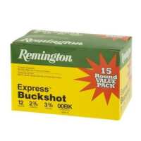 Remington 12 Gauge Ammunition Express Buckshot 12B0015B 2-3/4 00 Buck 9 Pellets 1325fps Value Pack of 15 Rounds