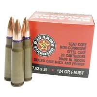 Century 7.62x39mm Ammunition Red Army Standard AM2423 124 Grain Full Metal Jacket Boat Tail Sealed Neck Primer 20 Rounds