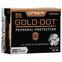 Speer 380 Auto Ammunition Gold Dot 23606GD 90 Grain Gold Dot Hollow Point 20 Rounds