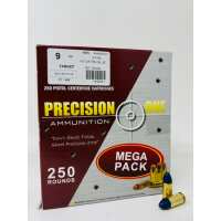 Precision One 9mm Ammunition PONE1605 124 Grain Match Full Metal Jacket REMAN MEGA PACK 250 Rounds