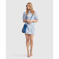 Rhapsody Geo Lnen Blnd Mini Dress BLUE / 06
