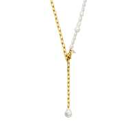 Pearl & Chain Connection Necklace Gold