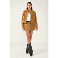 Perfect Stranger Amelie PU Suede Mini Skirt Tan 8