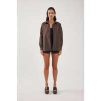 Perfect Stranger Hadid Striped Oversized Shirt Brown Stripe 10