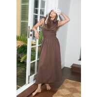 Perfect Stranger Bello Shirred Boat Neck Maxi Dress Brown 14