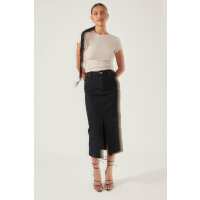 High Waist Split Denim Midi Skirt
