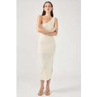 Perfect Stranger Sahara Diagonal Knit One Shoulder Midi Dress Nude S