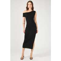Perfect Stranger Draped Shoulder Knit Dress Black L