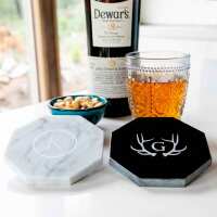 Engraved Barware Octagonal Marble Coaster Black / Coaster Box