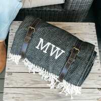 Embroidered Woven Picnic Blanket with Waterproof Backing White / None