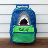 Personalised Shark Trolley Case For Kids Navy
