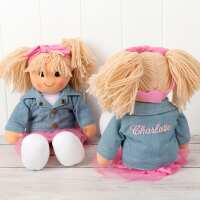 Personalised Rag Doll Lottie with Denim Jacket Baby Pink / None