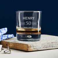 Engraved 305ml Round Whiskey Glass 50th Birthday Gift No / Round Scotch Gift Box