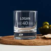 Engraved 305ml Round Whiskey Glass 40th Birthday Gift Yes - Same Front & Back Design / None