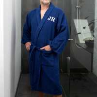 Embroidered Bathrobe Terry Towelling For Him Navy / X Large / White