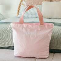 Embroidered Blush Pink Canvas Tote Bag White / None