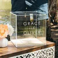Wedding Wishing Well Box with Clear Base Custom Artwork / Gold Padlock Latch Kit