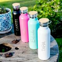 Engraved 1L Metal Water Bottle with Wooden Lid Yes - Different Back Design / None