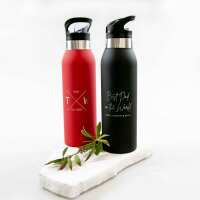 Father's Day Engraved Stainless Steel Thermo Sports Drink Bottles Black / No / None