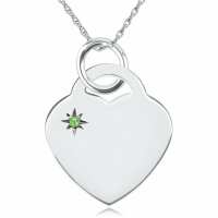August Birthstone Heart Necklace, Personalised Engraving, Sterling Silver, Peridot