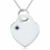 September Birthstone Heart Necklace, Personalised Engraving, Sterling Silver, Sapphire