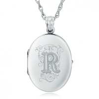Initial/Letter R Locket, Personalised/ Engraved, 925 Sterling Silver