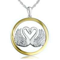 Swans Heart Necklace, Sterling Silver & Yellow Gold Vermeil
