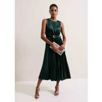 Simara Velvet Pleat Midi Dress