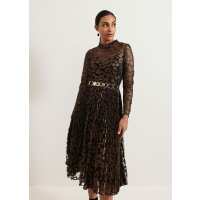Petite Theodora Leopard Pleat Midi Dress