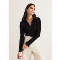 Lisa Black Ribbed Polo Neck Top