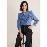Maryam Ruffle Front Denim Blouse