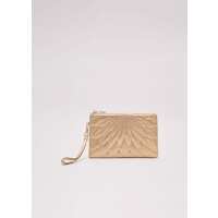 Gold Leather Crossover Stitch Clutch Bag